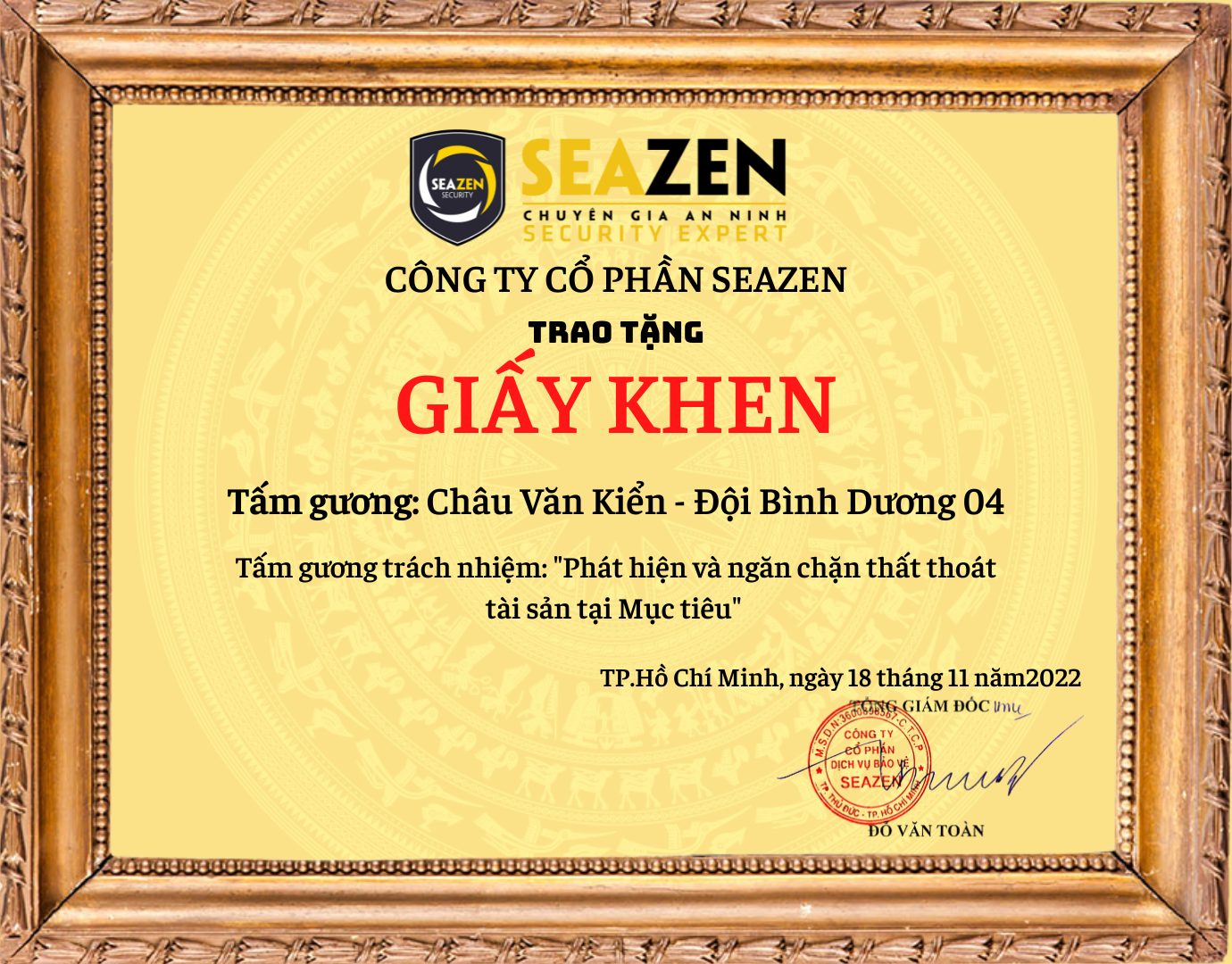 3. Đồng chí Châu Văn Kiển – Đội BÌNH DƯƠNG 04 ngày 18/11/2022: “Phát hiện và ngăn chặn thất thoát tài sản tại Mục tiêu” – Trao tặng bằng khen và huy hiệu “Trách nhiệm” và mức tiền thưởng 200.000vnđ
