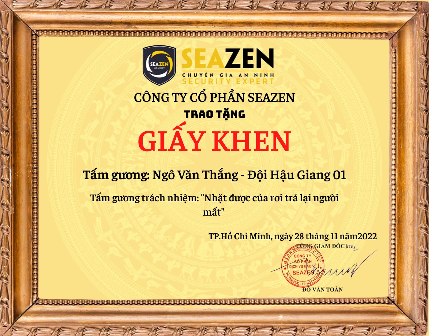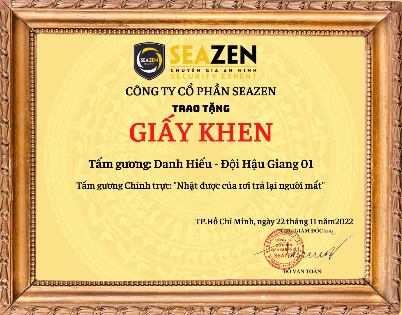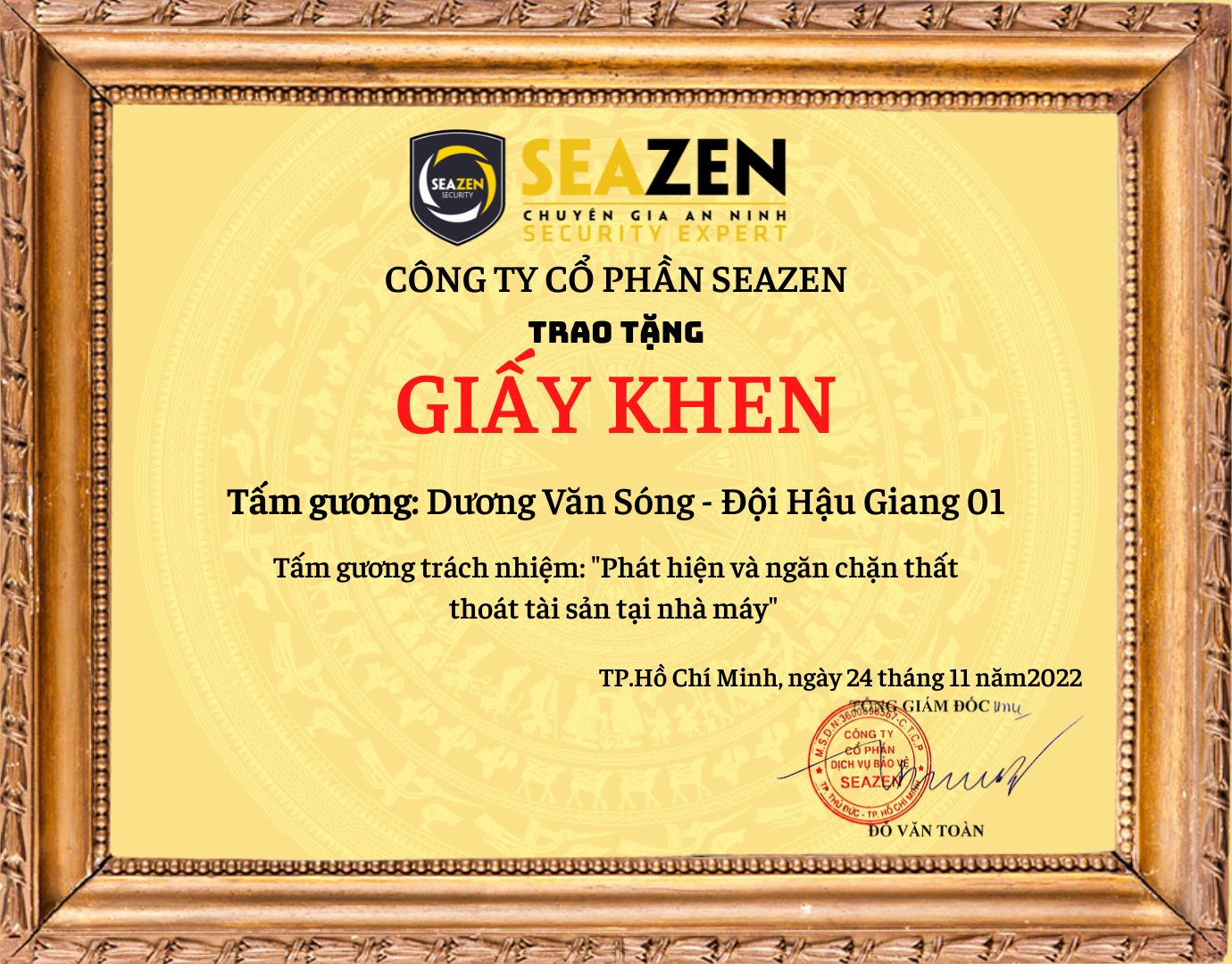 Công ty Cổ phần Dịch vụ Bảo vệ SeaZen xin tuyên dương 9 cá nhân xuất sắc tháng 11/2022